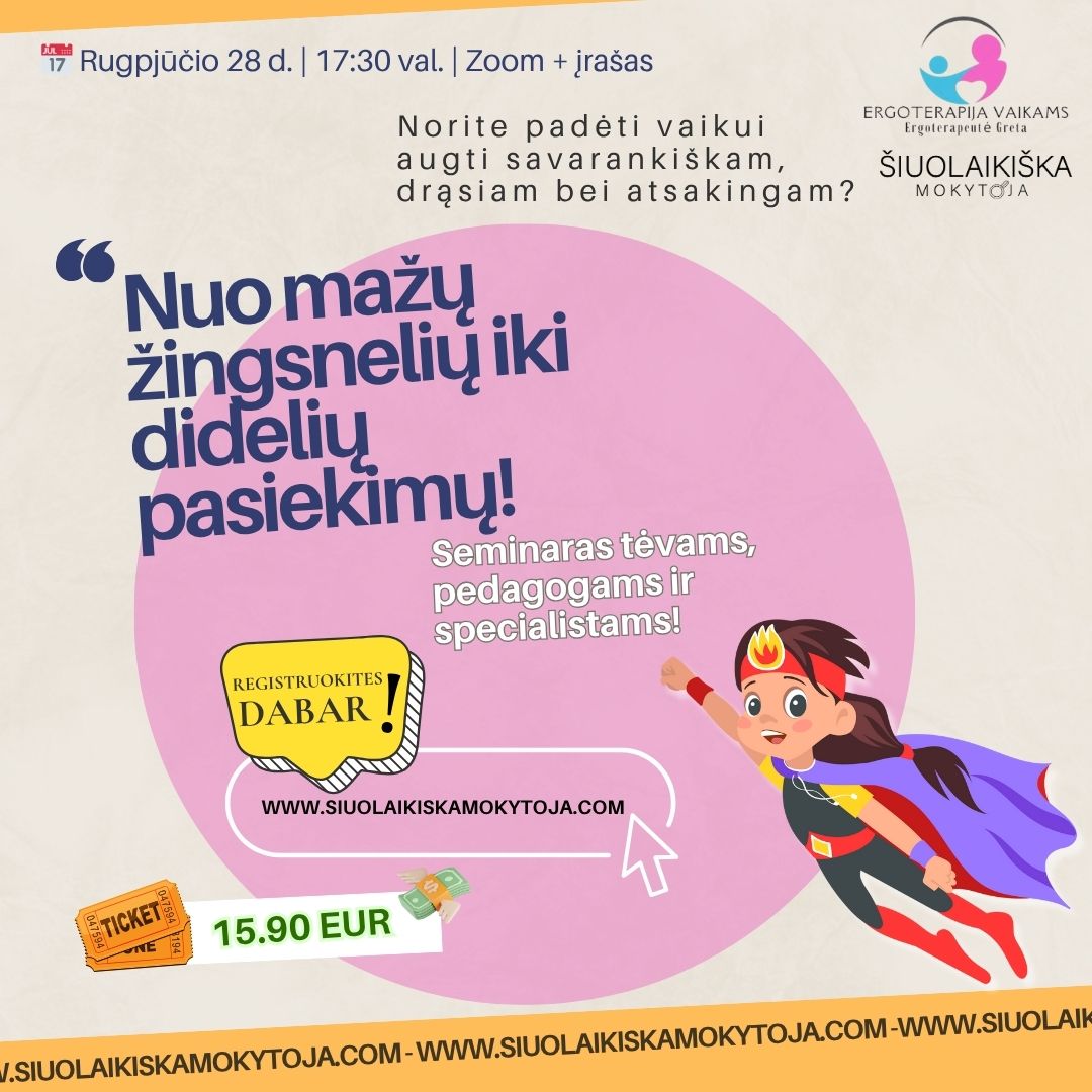 📩 Registruokis dabar: SEMINARAS "NUO MAŽŲ ŽINGSNIŲ IKI DIDELIŲ PASIEKIMŲ"